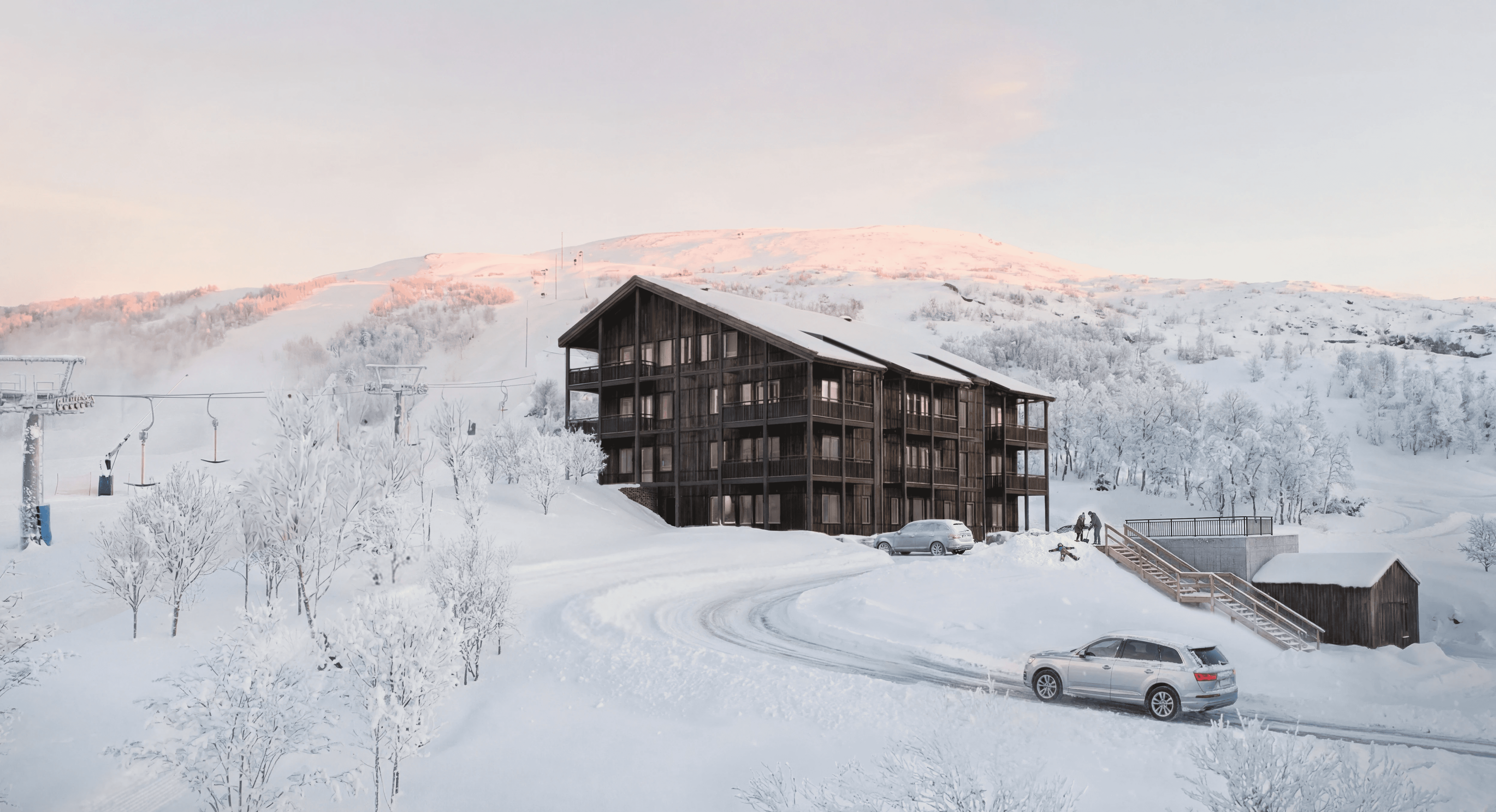 Inspirerat av Härjedalens arkitektur - Vill du att tiden i fjällen ska vara så mycket fjäll som möjligt? Mer av cykel, skidor och stugmys och mindre av barnfamiljslogistik, parkeringsplatser och utrustningstrassel? I Vigelby View möter gedigna material smarta funktioner som underlättar.